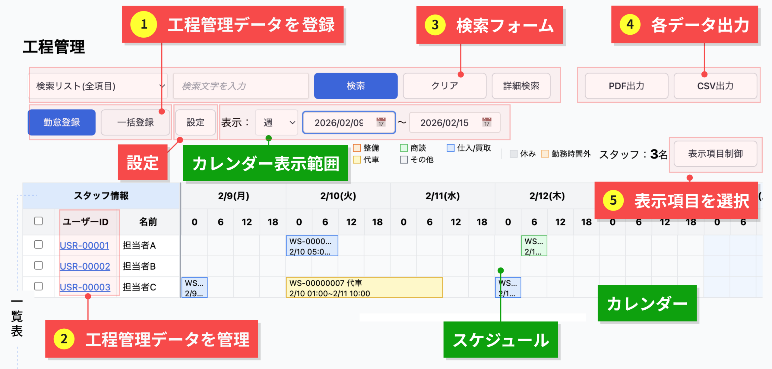 ① 工程管理データ登録