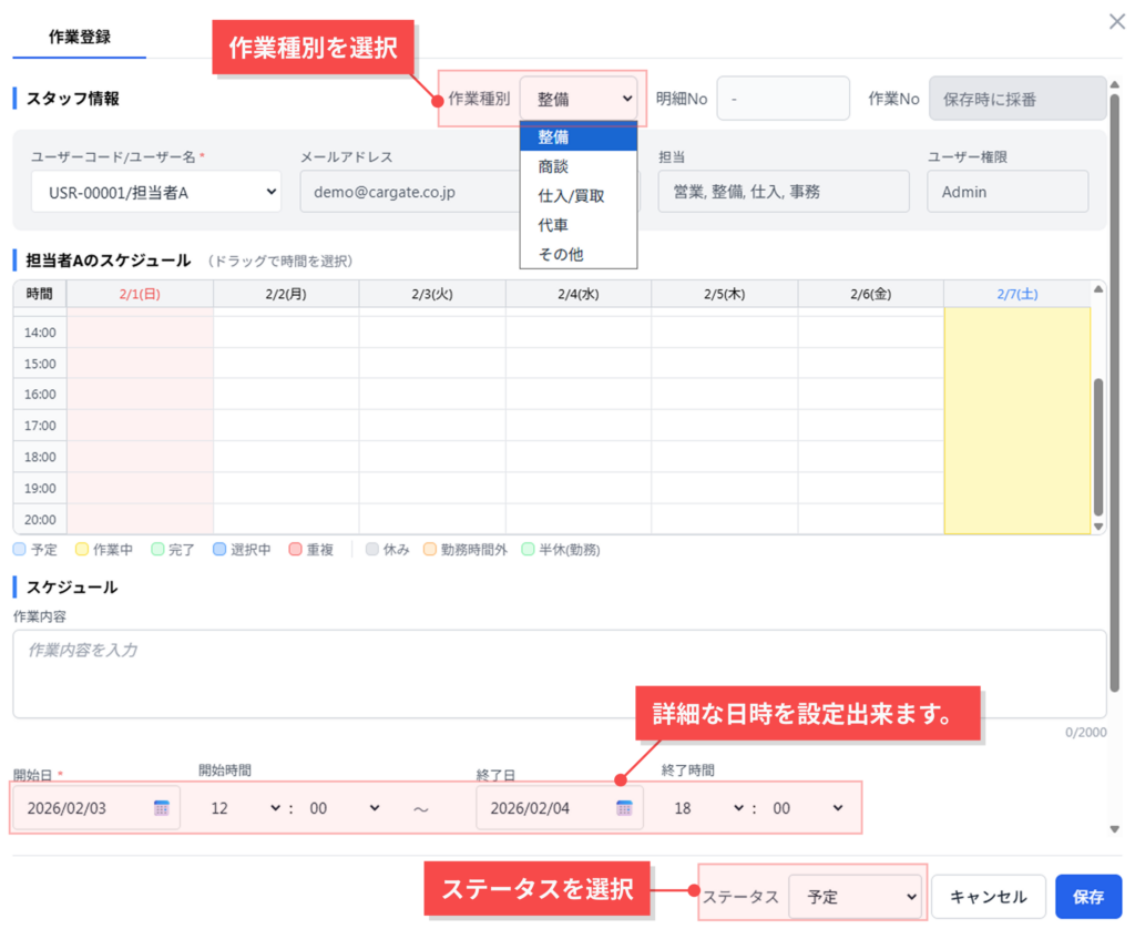 詳細な期間を登録出来ます。
