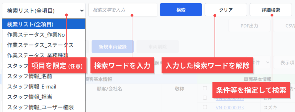 3. 該当する顧客・車両が一覧に表示されます