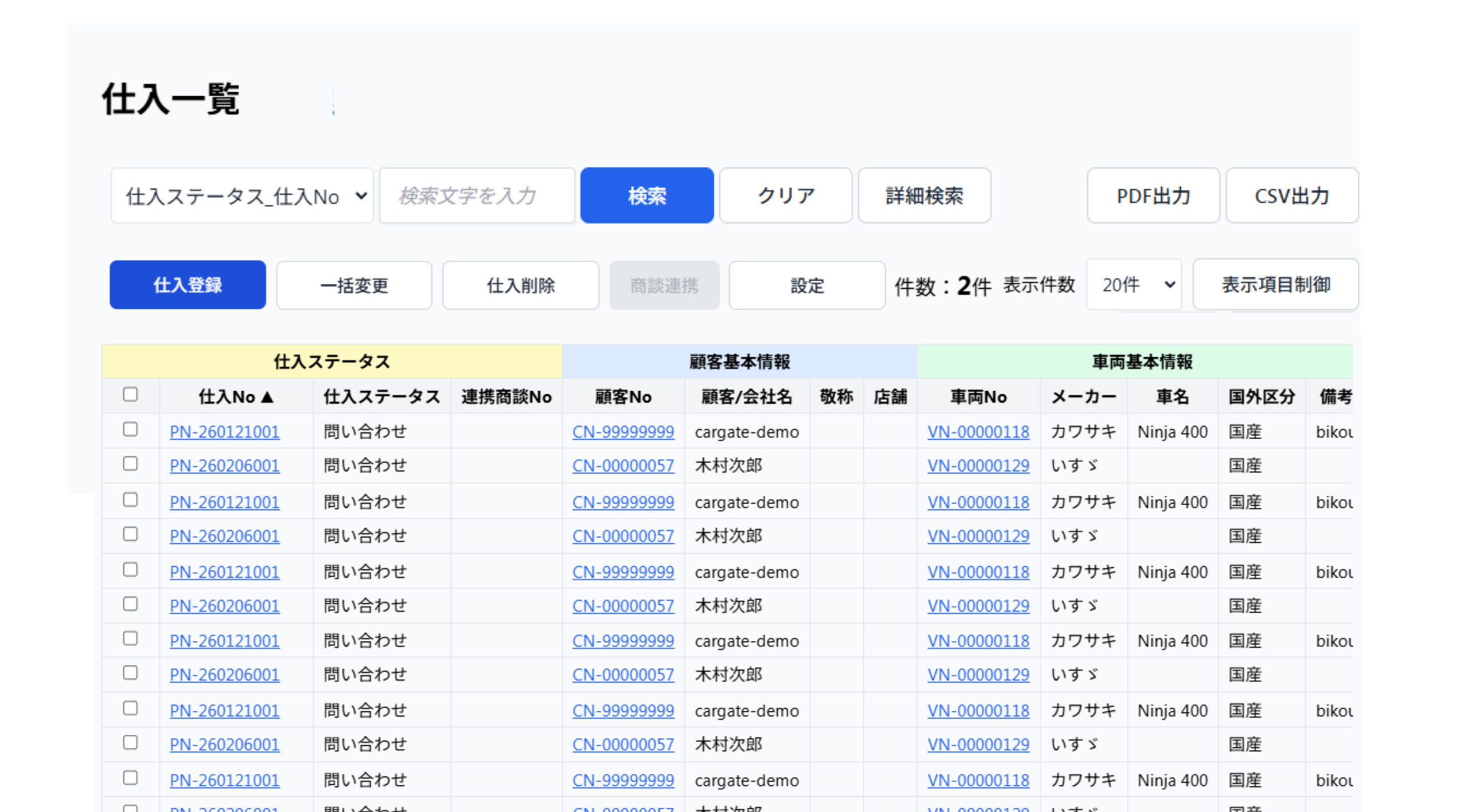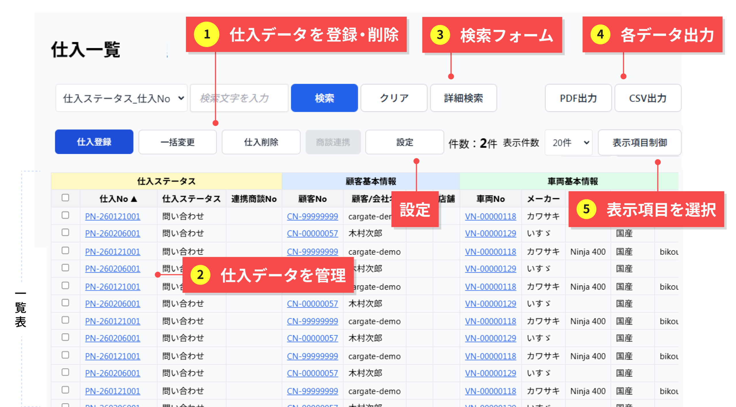 - 該当するお客様・車両が一覧に表示されます